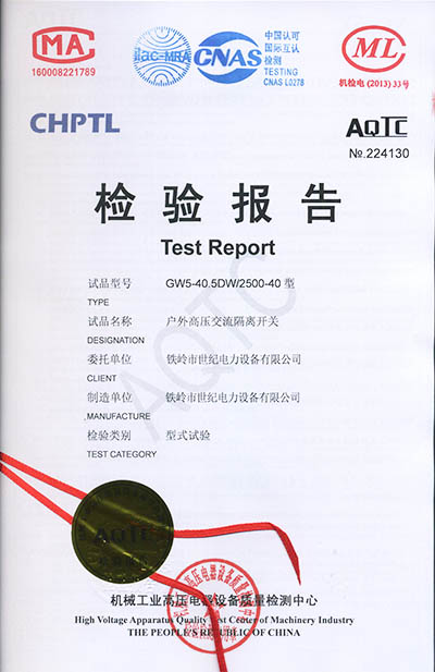 戶外高壓交流隔離開關(guān)檢驗(yàn)報(bào)告