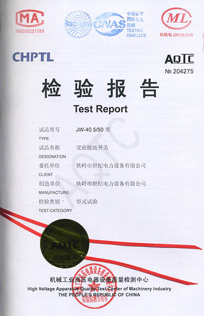 交流接地開(kāi)關(guān)檢驗(yàn)報(bào)告