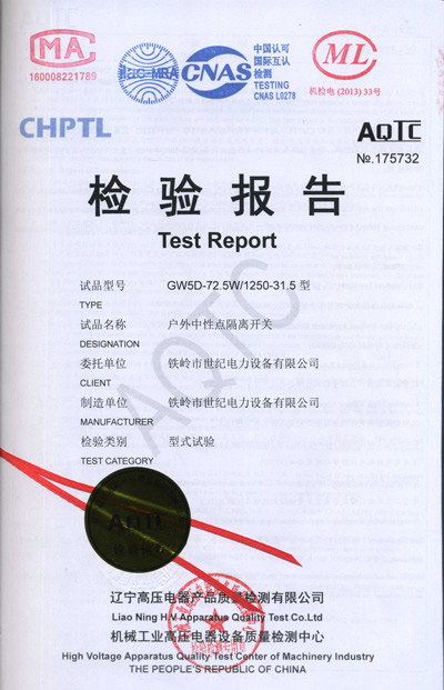 戶外中性點(diǎn)隔離開關(guān)檢驗報告